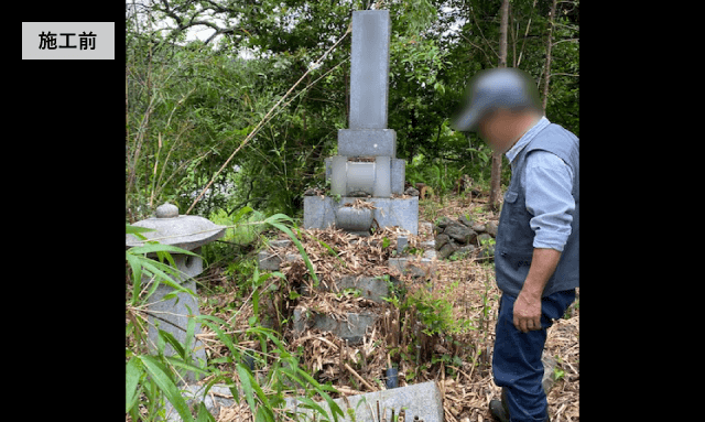 - お墓じまい工事と閉眼供養のお寺さんのお手配、ご遺骨お取出しして散骨(森林散骨)をご希望により、弊社提携先の森林散骨のお寺さんをお手配いたしました。閉眼供養時にお客様お立会いを頂きました後、お墓の撤去工事・お骨取出し・散骨先への郵送、施工後に墓地管理者様の工事完了確認まで責任施工いたしました。