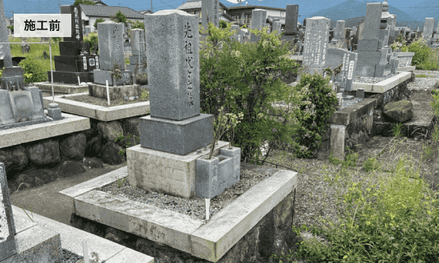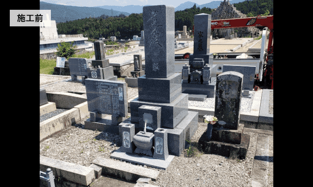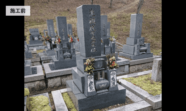 - 自治会管理の墓地。お墓撤去時に管理者さんに確認していただくために工事が終わる予想時間に石材店さんから管理者さんへ連絡し、完成の確認をしていただきました。 お墓の閉眼供養は菩提寺さんに依頼され、工事日前に済ませていただきました。改葬手続きもお骨の納骨先への移動も全て郵送で出来たため、遠方からお客様が墓地にお越しになったのはお墓の閉眼供養をする時だけで終えられました。