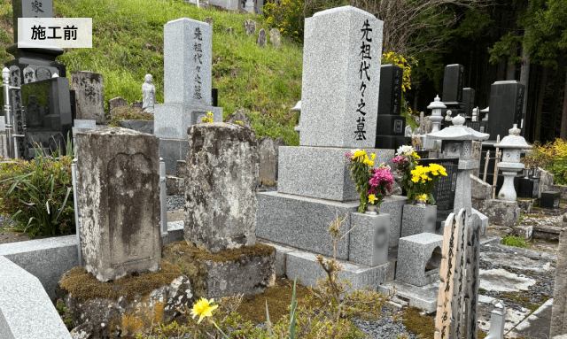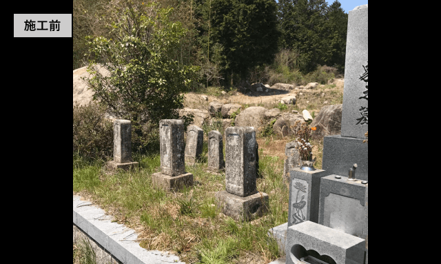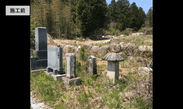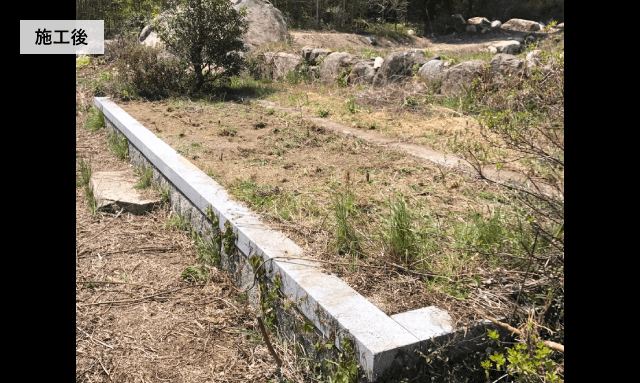 - 相見積のお客様でした。お墓の境界線を明確にする巻石(外柵)が3家共同な上、階段状になっている墓地のため、他墓に影響がないよう細心の注意を払って工事を行っていただきました。 砂利下にコンクリートも敷いてありましたが、他墓への影響があり防草対策も兼ねて残す施工内容となりました。 また、私有地のため、地番や墓地管理者様などお客様ご自身もご存じではない部分もあり、各所へ問い合わせ確認し必要書類についてもお手伝いをいたしました。