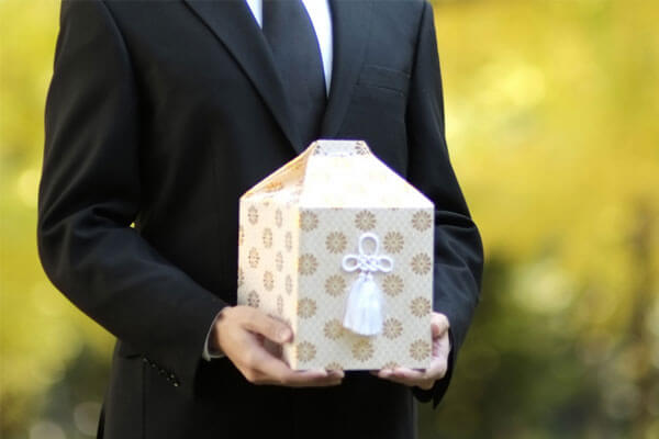 火葬が終わると火葬炉の前に戻り、骨壺に遺骨を入れる「収骨(お骨上げ)」を行います。
